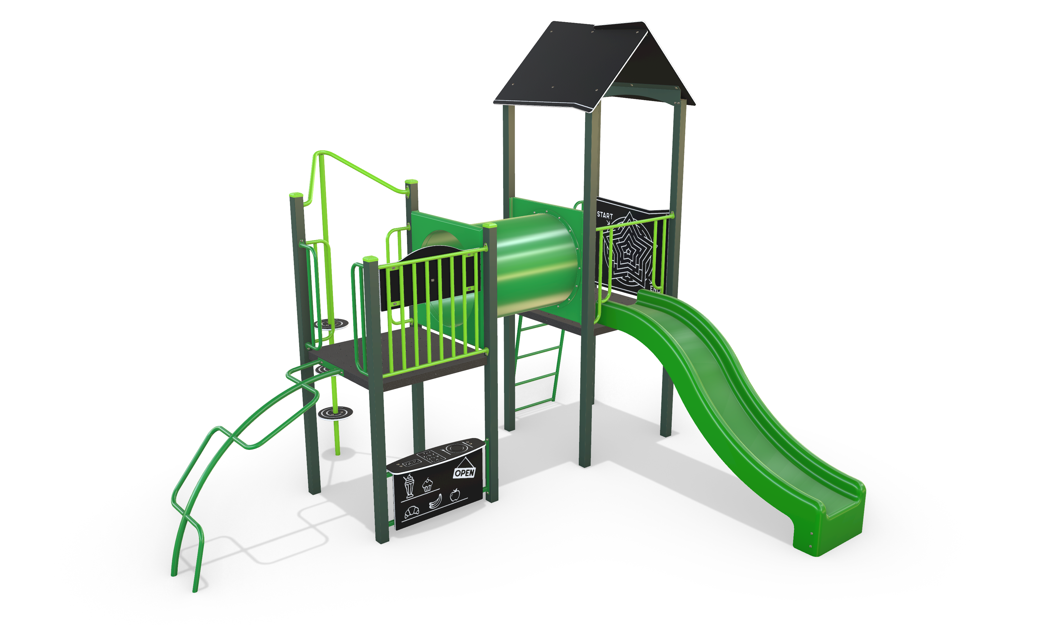 Introducing the Pygmy Possum, the most popular combination unit from our ‘Classics Remastered’ series. This old favourite has been updated with exciting new activities, including a star maze activity panel, a café-styled shop servery, and a spiral pommel climber, so that it not only boasts visual appeal but also provides a durable and engaging play experience suitable for all ages.
