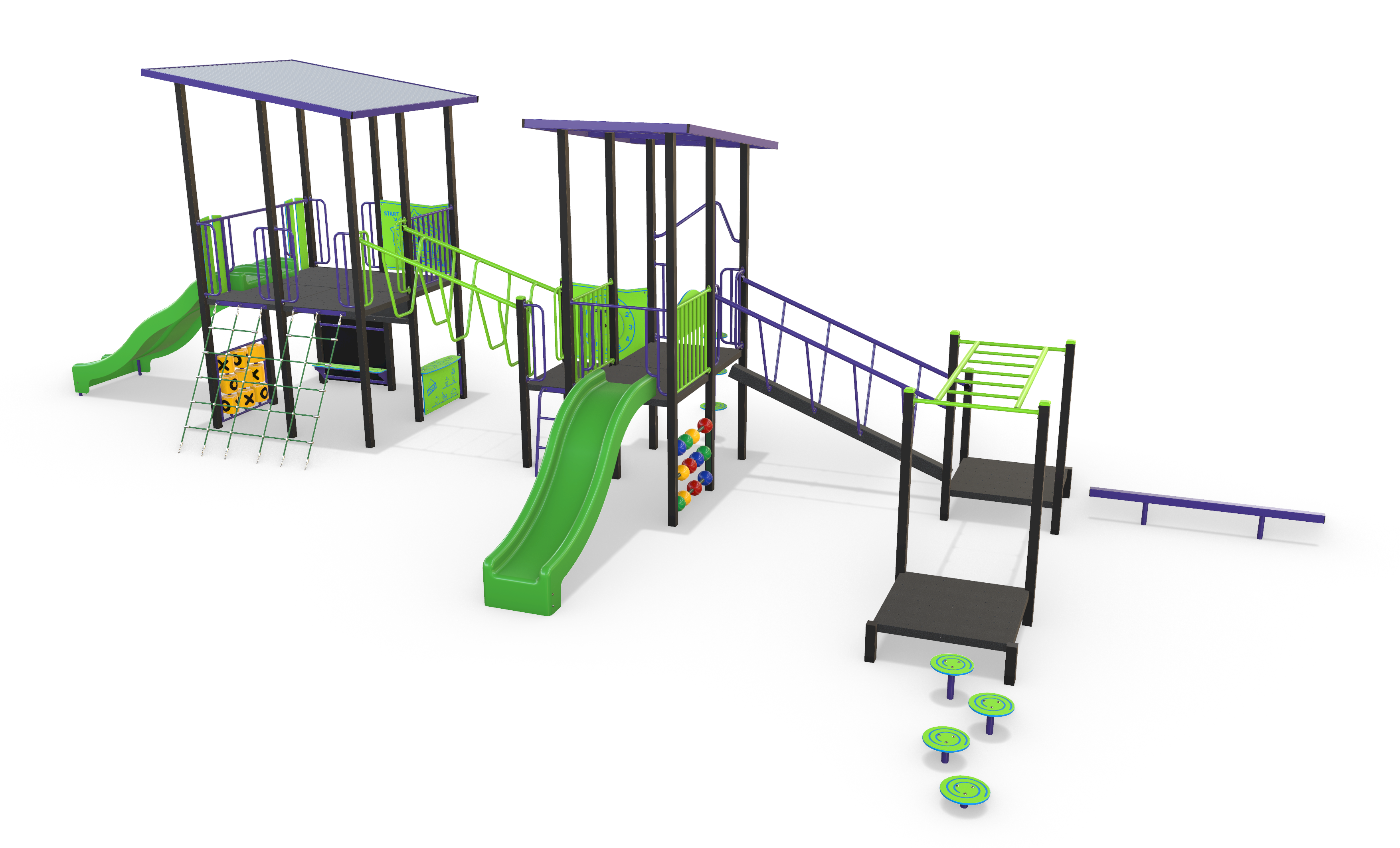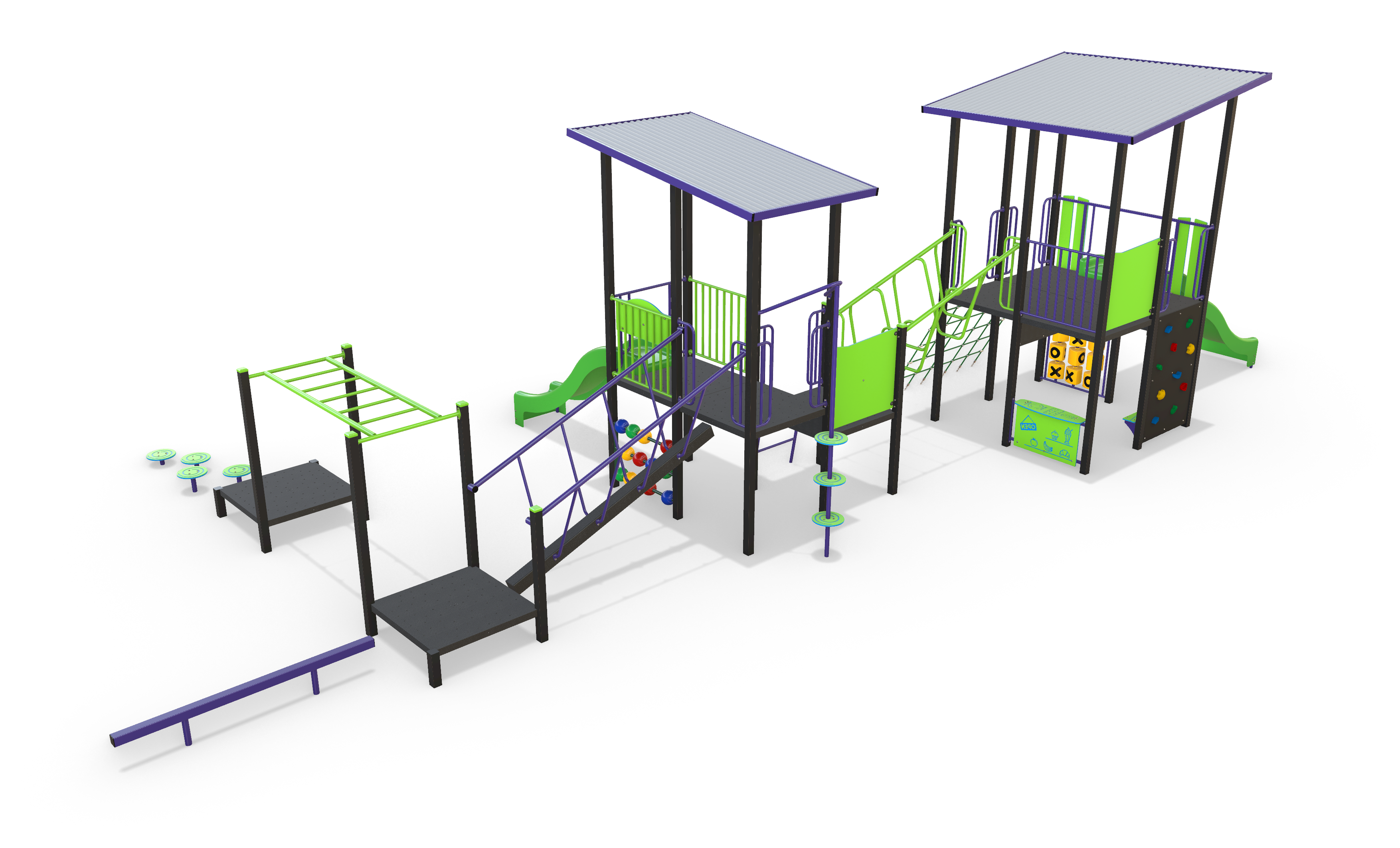 The Aspley Combination Unit is ideal for junior-aged play and is a great option for primary schools. It features two slides, including a double slide for inclusive fun as well as plenty of low-level activities, and monkey bars to help kids build upper body strength while they play and explore.