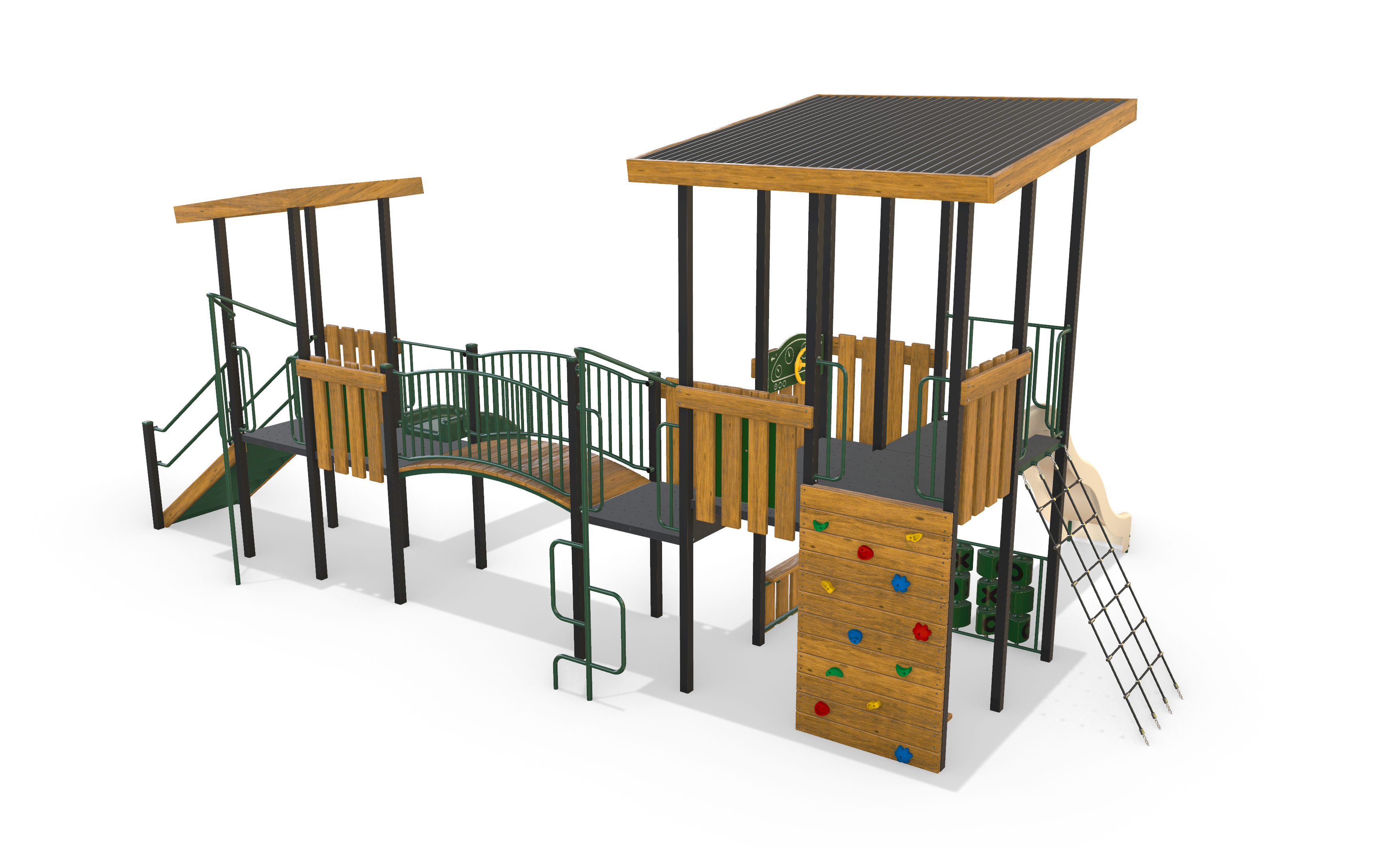 The Lincoln Combination Unit, part of the Fortitude Range, is designed with younger children in mind. Featuring easy-access stairs and two fun slides, this unit offers plenty of engaging activities to keep little ones active and entertained. Perfect for fostering early play and exploration.