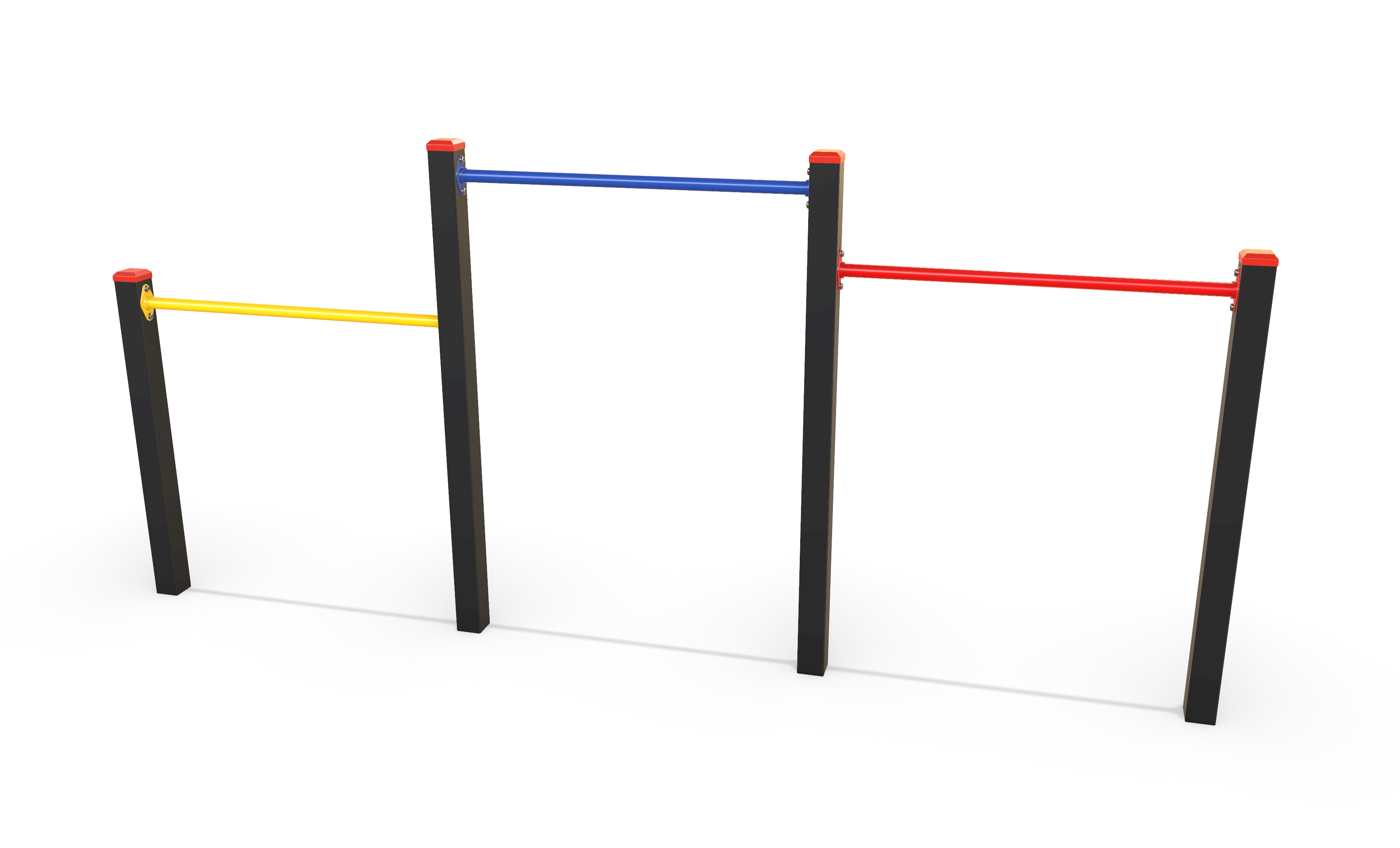 The Roll Over Bars – Triple deliver a dynamic strength and fitness challenge, designed to build upper body strength, coordination, and confidence. Featuring three bars at varying heights, this freestanding unit caters to a wide range of ages and abilities, allowing multiple users to engage at once while supporting progression. Constructed from durable steel for high-use environments, it’s an ideal addition to schools, parks, and community spaces seeking active, gymnastic-style play.